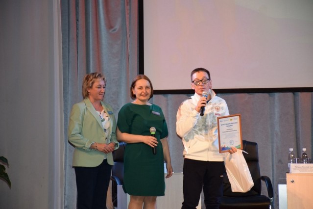 "За личный вклад в развитие адаптивной физической культуры и спорта" и общим фото со студентами колледжа.