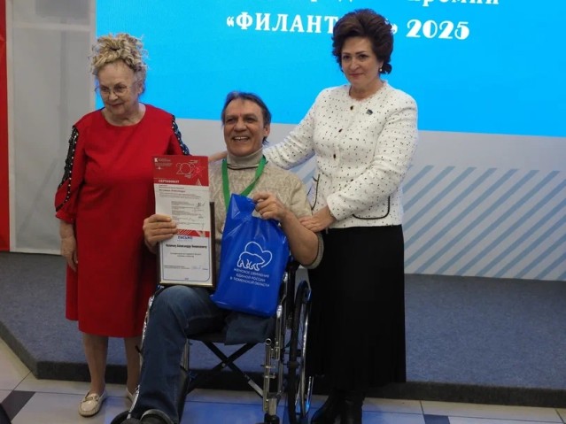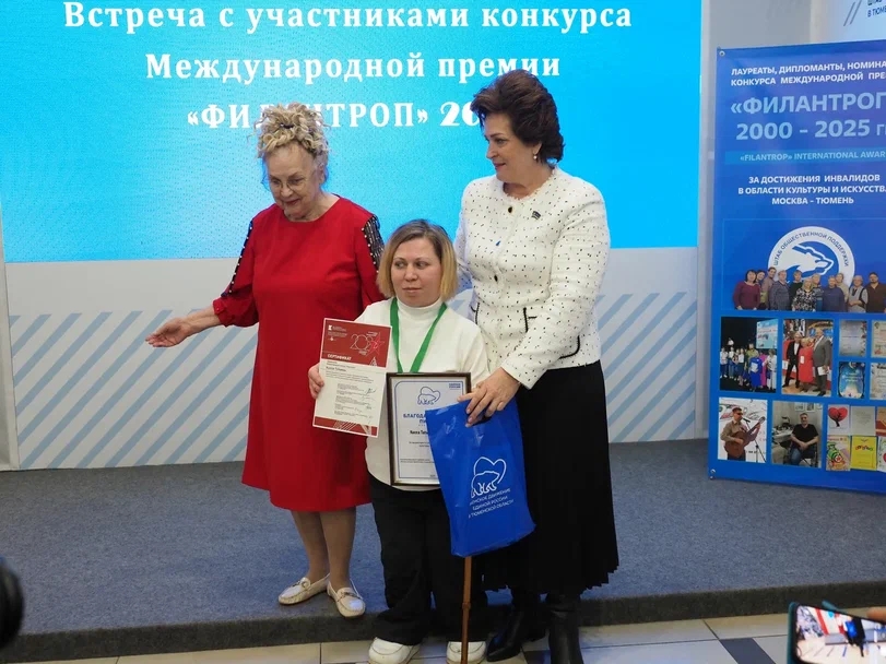 И только участников 2025 года, к счастью, заметили и решили выразить внимание и признательность. Участник Премии этого года, автор уникальных художественно-изобразительных работ, член Калининской окружной организации ВОИ Раиса Лебединец обратилась с инициативой к председателю Тюменской городской Думы Светлане Ивановой о поддержке участников конкурса и организации для них праздничного мероприятия с вручением сертификатов и благодарностей от гордумы. Инициативу Светлана Владимировна поддержала - мероприятие организовали. Правда, благодарности и подарки были предусмотрели только для участников "ФИЛАНТРОПА" 2025 года.